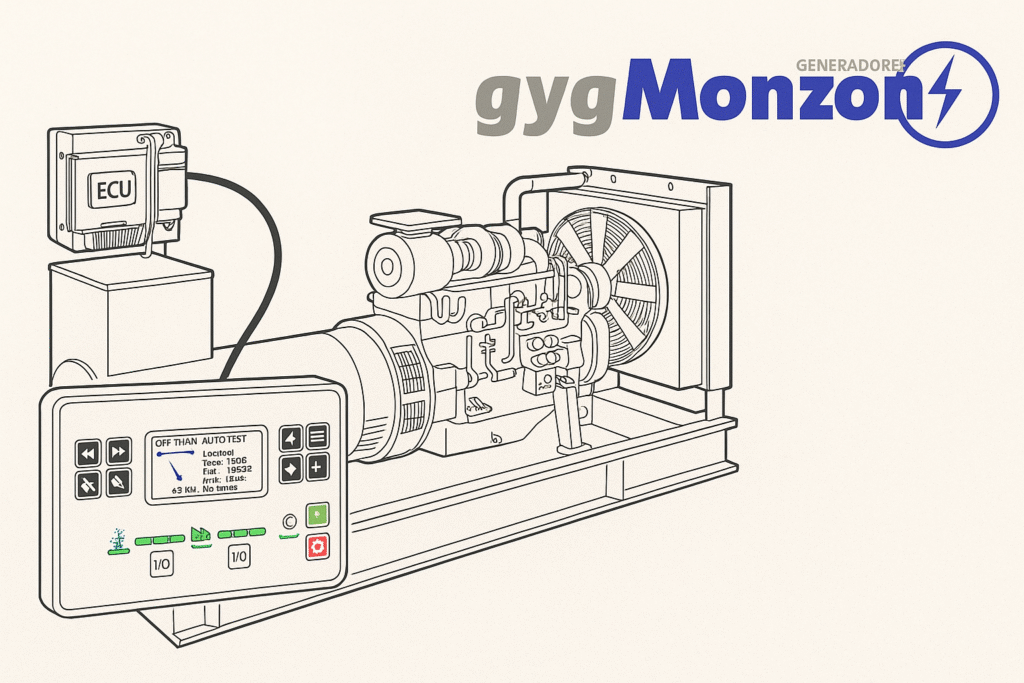 En gygMonzón todos nuestros grupos electrógenos equipan centralitas ComAp actualizadas con lectura completa del J1939, mostrando los fallos y alarmas claramente en castellano, para que nuestros técnicos y clientes tengan siempre la información más precisa del estado del motor.