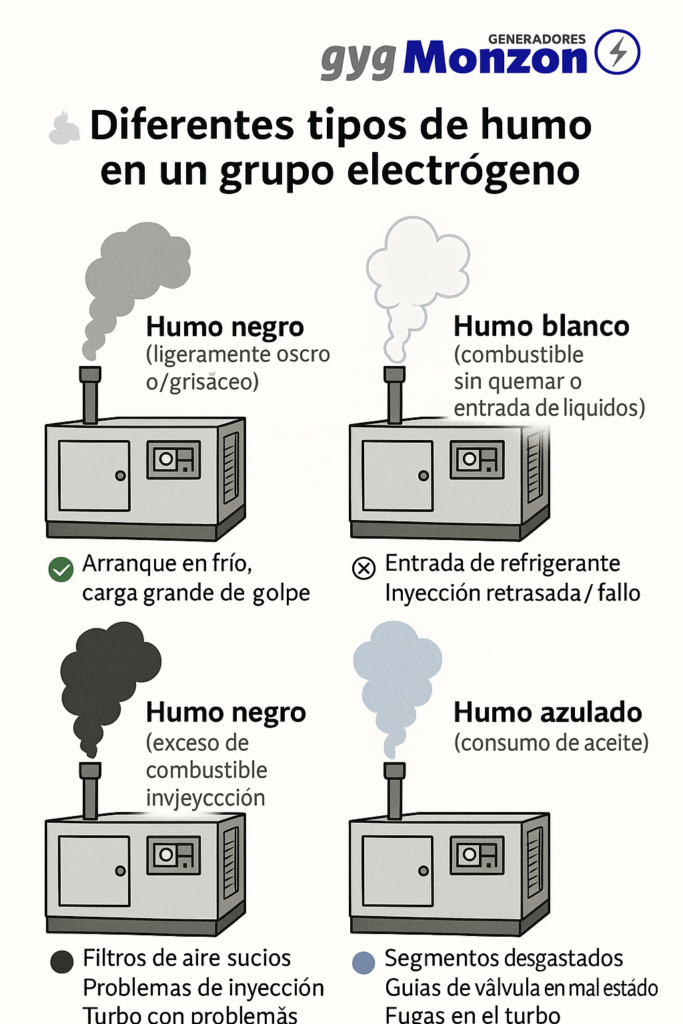 - ⚙️ Sobrecarga del generador: el motor no puede con la demanda y echa humo negro constante